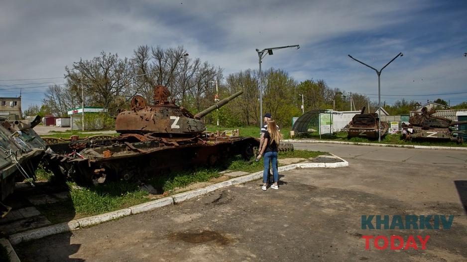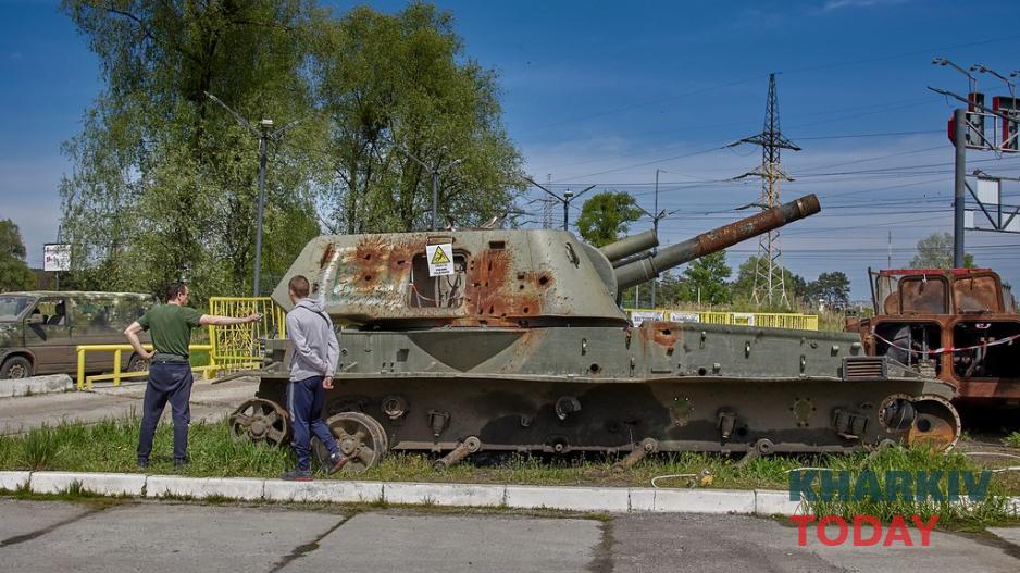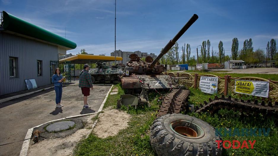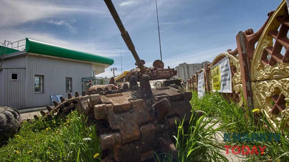 Самым интересным экспонатом выставки должен стать танк, подбитый на въезде на Северную Салтовку со стороны Циркунов — первая уничтоженная российская техника. Активисты "Дневников" сегодня вытаскивали его из-под порванных проводов.