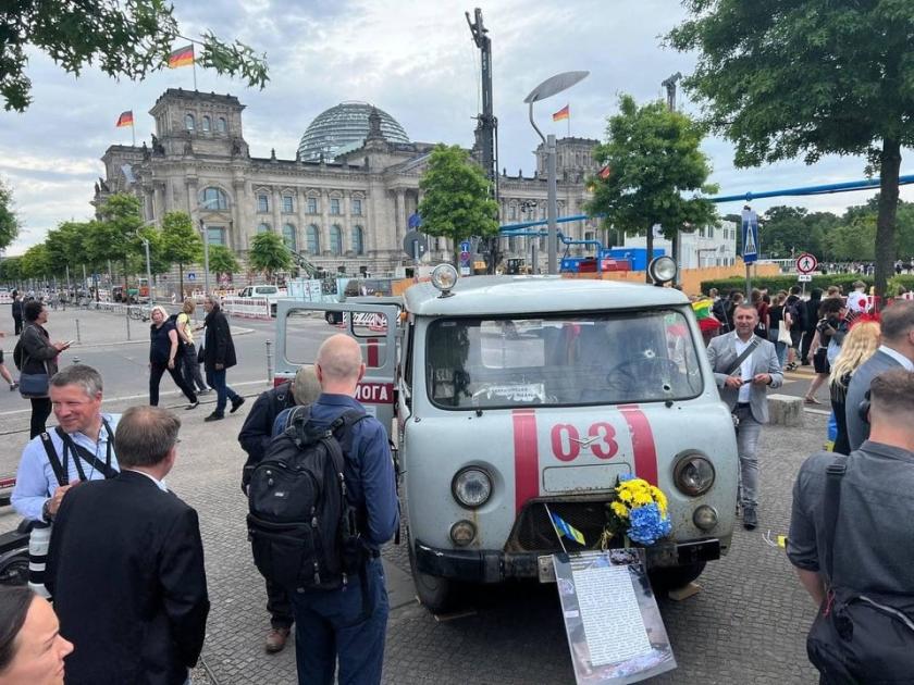 Автомобиль скорой помощи, поврежденный при обстреле россиян в Дергачевской громаде, продолжают демонстрировать в странах Европы. В настоящее время автомобиль находится у здания Рейхстага в столице Германии Берлине.