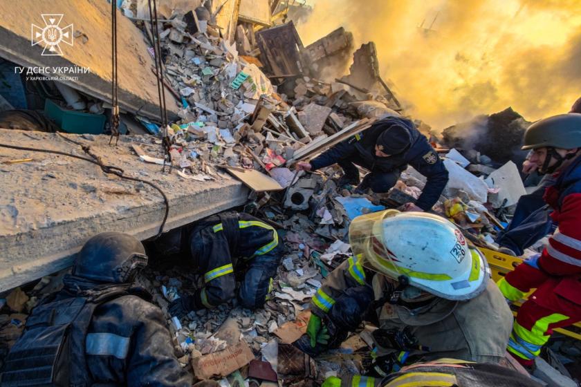 Спасателям удалось деблокировать из-под завалов тела двух погибших: женщины и фрагменты тела (предварительно мужчину), сообщили в управлении ГСЧС Харьковской области.