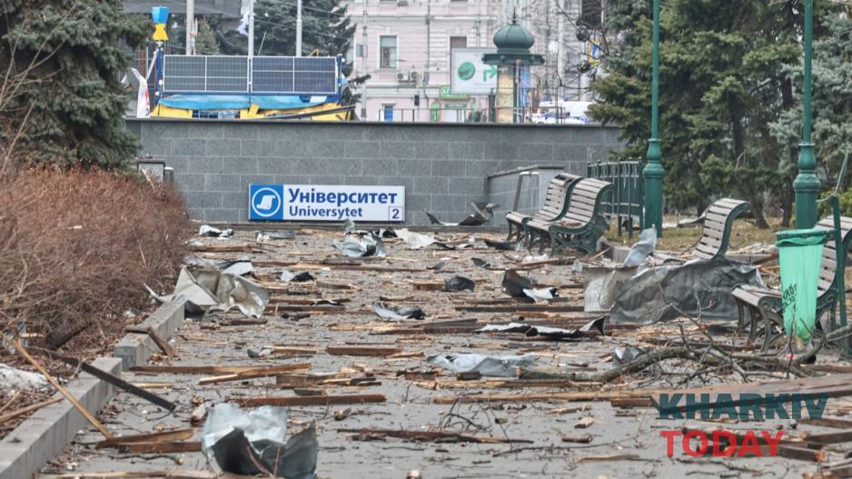 Утром 1 марта в городе прозвучала воздушная тревога и сразу же прогремели взрывы в центре города: на площади Свободы, возле Клочковской, зоопарка, сада Шевченко. В Харьковской облгосадминистрации и всех соседних зданиях выбиты окна, частично разрушены перекрытия. В волонтерской палатке "Все для перемоги" никто не пострадал. Ее перенесут в безопасное место в метрополитене.