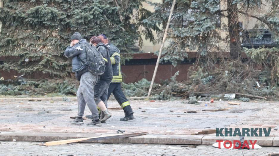 В Харьковской облгосадминистрации разрушена лестничная клетка, под завалами находятся люди. Спасатели освободили как минимум шесть человек, около 20 человек ранены.