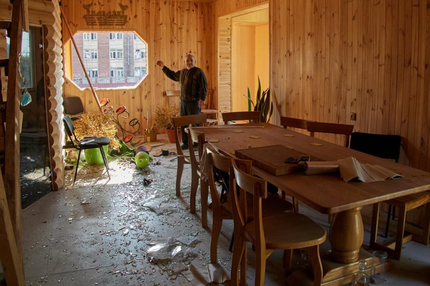 Обломками также было повреждено историческое здание общежития Университета железнодорожного транспорта, построенное в 20-х годах прошлого столетия.