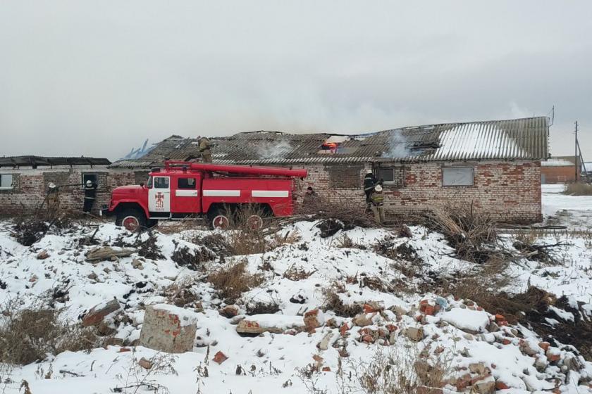 На сельхозпредприятии загорелась крыша на площади около 800 квадратных метров.
