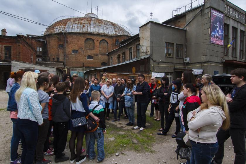 Воспитанники детской юношеской студии «Старый цирк», их родители, представители молодежных организаций и просто неравнодушные харьковчане требуют не допустить продажи уникального здания.