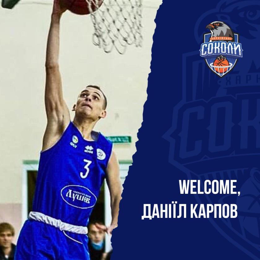 Даниил Карпов родился 19 мая 2001 года. Рост — 185 сантиметров, вес — 78 килограммов. Играл в Одесской области за "Химик", "СДЮСШОР им. Литвака", БК "Одесса", ОБШ им. Белостенного, "Овидий", а также за "СумГУ" (Сумы). В "Соколах" будет защитником.