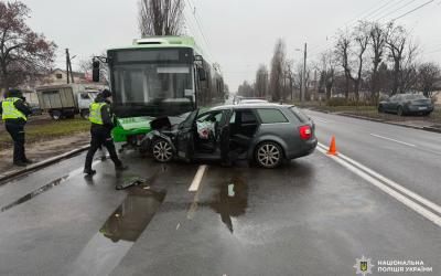 Водитель протаранил припаркованный троллейбус в Харькове