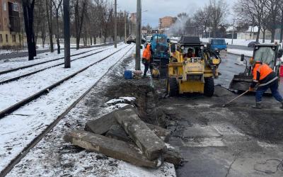 На трассе в Харькове восстанавливают покрытие после удара авиабомбы