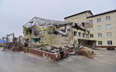 Российская армия разрушила больницу в Изюме в 2022 году. -