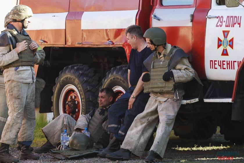 "Известно, что в то время на территории технической площадки работали группы, готовившие территорию для дальнейшей очистки. Взрывные работы в то время на территории площадки не проводились. Сейчас на месте происшествия работают пожарные команды Вооруженных Сил Украины и ГСЧС. Для ликвидации пожара привлечены два пожарных танка, инженерная машина разграждения, восемь пожарных автомобилей, самолет Ан-32 и вертолет Ми-8. Также дополнительно направлены еще два пожарных танка. Осуществляется воздушная разведка с помощью вертолета, привлечены подразделения Военной службы правопорядка в ВС Украины для оцепления территории", - говорится в сообщении МО.