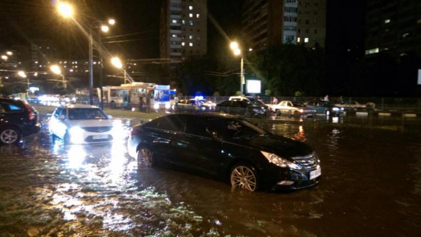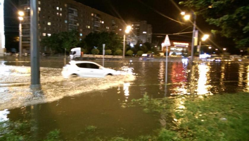 Харьковская ливневая канализация не справилась с количеством воды, выпавшим на город после дождя. По словам очевидцев, машины буквально плавали в потоке воды, который накрывал легковушки до самого капота.
