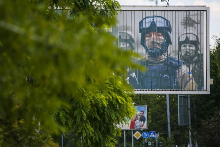 По его информации, в городе размещены два десятка бигбордов с двумя разными изображениями. Листовки также расклеены в метро, маршрутках, троллейбусах и трамваях.