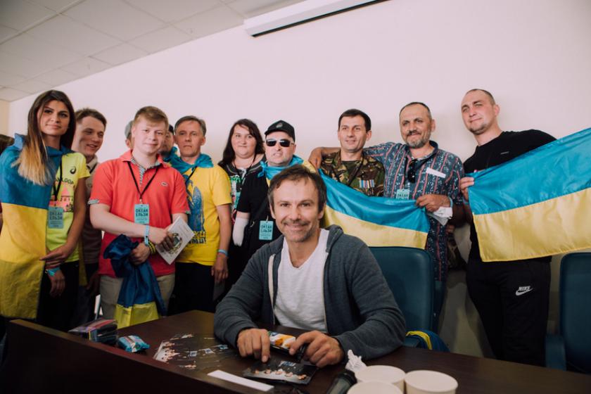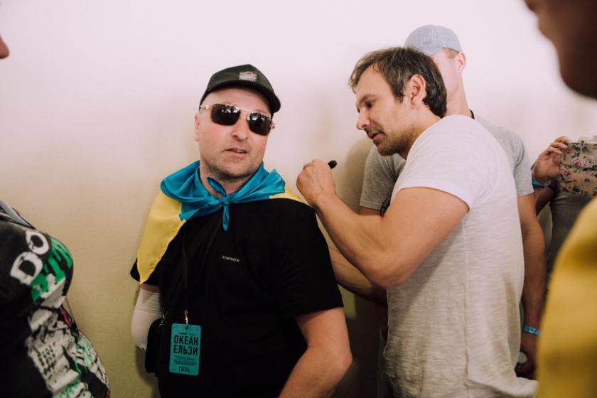 Святослав Вакарчук, во время недавнего визита в Харьков с концертом в поддержку нового альбома "Без меж", встретился с волонтерами и бойцами АТО.