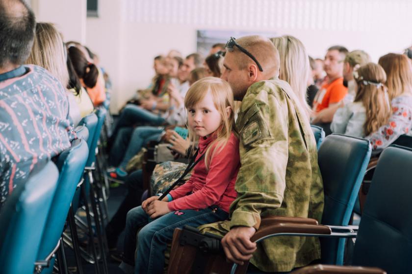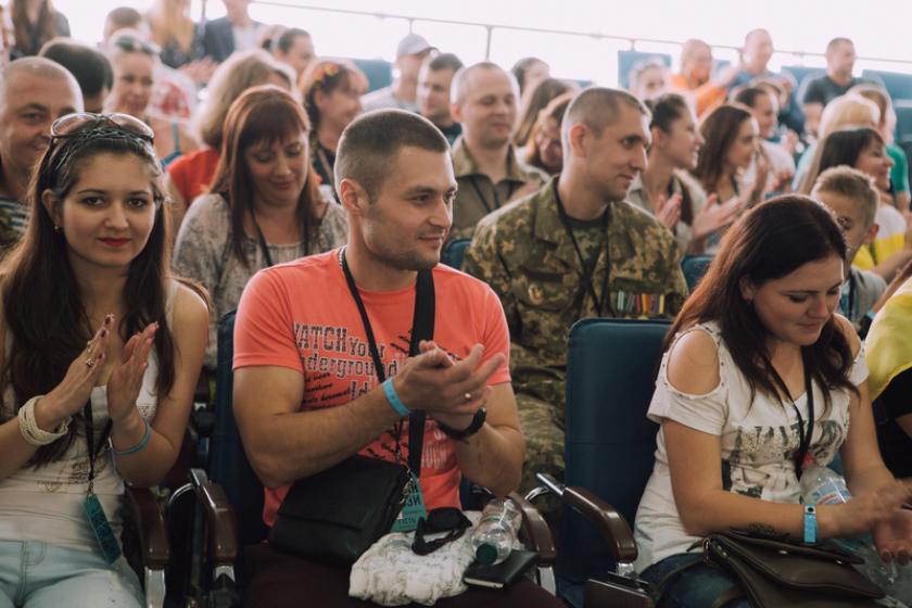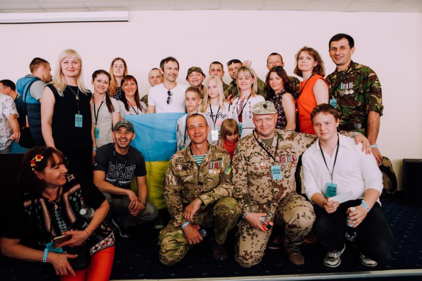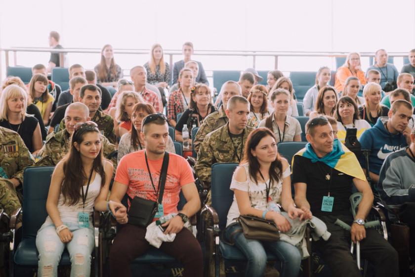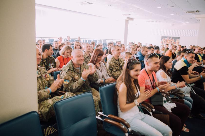 На встречу с фронтментом "Океана Ельзи" пришли около 100 человек, среди которых были представители 79-й, 93-й, 25-й, 95-й десантных бригад, 92-й моторизированной бригады, спецназа ВМС, а также волонтеры.