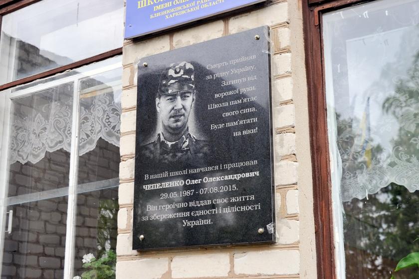 В родном селе Лукашовка, что в Близнюковском районе Харьковской области, увековечили память о бойце 92-й отдельной механизированной бригады Вооруженных сил Олеге Чепеленко, установив мемориальную доску на школе, где он сначала учился, а затем и работал.