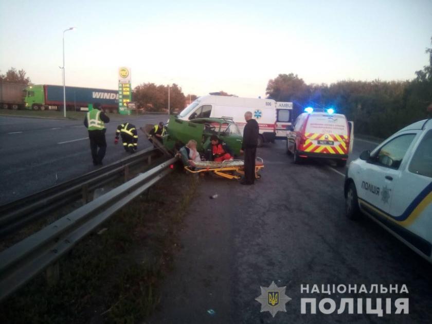 Сегодня, 26 сентября, в 06.15 на въезде в пгт Песочин автомобиль ВАЗ-2106 не справился с управлением и совершил наезд на разделительный отбойник.
