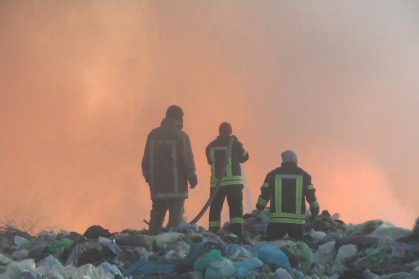 Спасатели десять часов тушат пожар на мусорном полигоне в Рогани