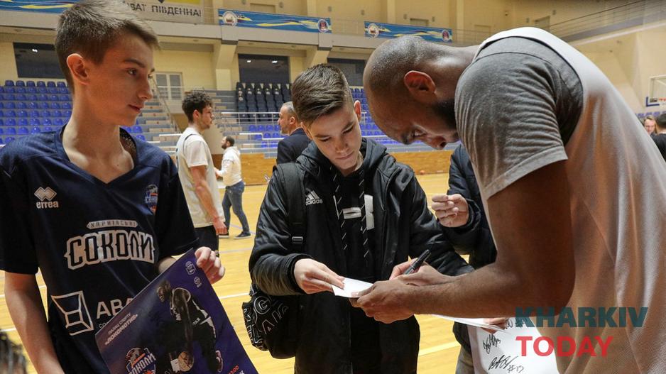Болельщики не упустили возможности увидеть "Харьковских соколов" до игр. Среди тех, кто сидел на трибуне во время открытой тренировки, был 4-летний Максим — сын форварда баскетбольного клуба Александра Месяца. Малыш пришел в форме и после того, как папа закончил тренировку, он поиграл с ним.