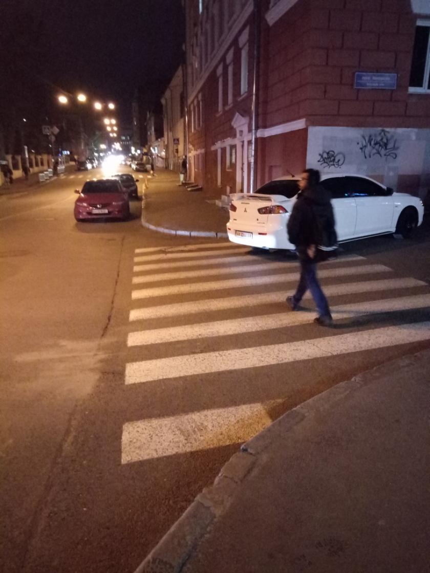 Улица Сумская: возле театра Шевченко и на Бурсацком спуске припарковавшиеся игнорируют близость пешеходного перехода.