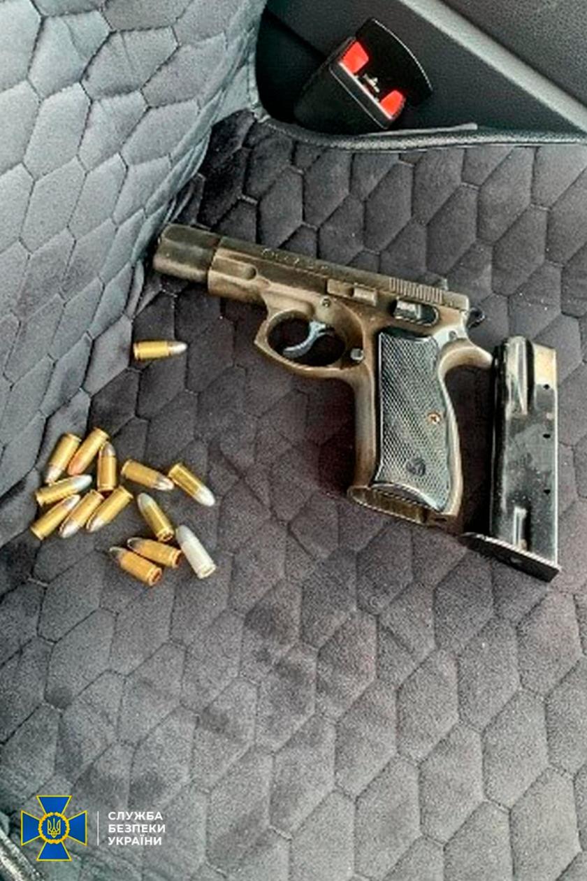 Під час обшуків у зловмисників удома, у транспорті, а також слідчому ізоляторі знайшли та вилучили три пістолети з набоями, 16 мобільних телефонів і 19 сім-карток, 12 банківських карток, нотатки щодо нібито "боргів" восьми людей, чорнові записи.