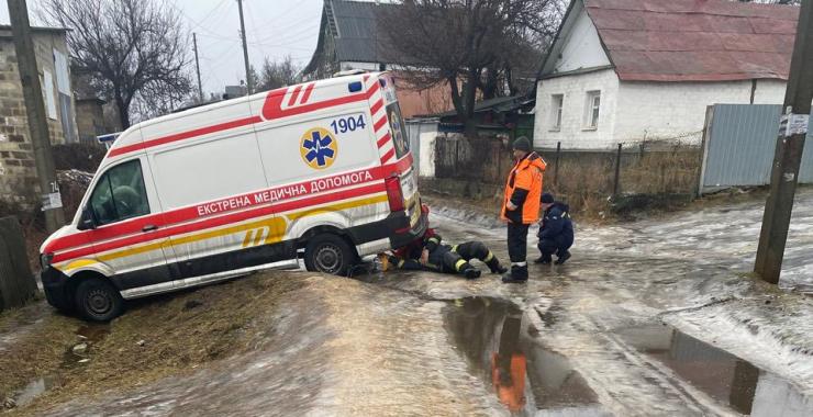 "Повертаючись із виклику, бригада рухалася в складних погодних умовах — ожеледиця та дощ значно ускладнювали дорожню обстановку, до того ж вулиця була вузькою. Внаслідок заносу двомостовий автомобіль ЕМД знесло з проїжджої частини. На допомогу оперативно прибули працівники ДСНС. Завдяки їхнім злагодженим і професійним діям автомобіль було витягнуто, після чого бригада продовжила службу", розповіли у центрі екстреної медицини та медицини катастроф.