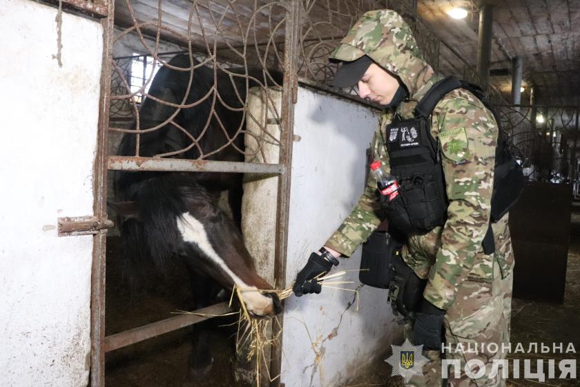 "Що з власником цих коней — незрозуміло. На зв'язок не виходить. Якось це юридично, як варіант, зробити, або їх разом із конюхом відправити, щоб доглядали, у більш зручних умовах, тому що у цьому приміщенні були прильоти, тому воно частково зруйновано. Пропозицій дуже багато було — хтось кудись їх хотів забрати. Але це ж тварини. Вони породисті. У них до війни були документи. Люди приїжджали забрати їх і по одному, і по два. Але власник-то є, тому віддати кому-то їх просто так — це неможливо", — пояснив поліцейський офіцер Старосалтівської селищної громади Дмитро Новицький.