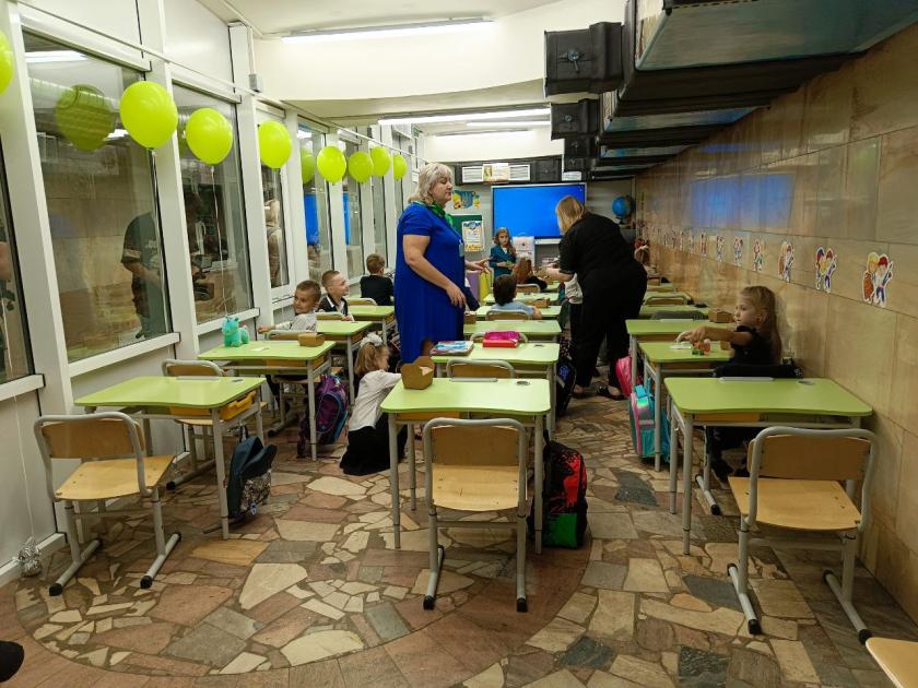Гамір, сміх, фруктовий сік, м'які іграшки на партах, блоки Lego duplo — звичайна перерва учнів у будь-якій українській школі. Для першачків харківського ліцею №5, яких уперше привели до метро, усе відбувається уперше і природньо. Ось учителька Олена Василівна бере дзвоника до рук і "гукає" на третій, останній на сьогодні урок. Усі її діти красиво одягнені, це не шкільна форма, але святкові сорочки, метелики у хлопців, стрічки у дівчаток. У кожного учня— бейджик із іменем для швидшого знайомства, а на зворотньому боці — імена учителя, тьютора і їхні контактні телефони (на випадок, якщо загубляться).