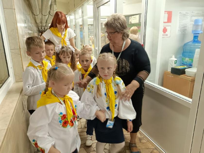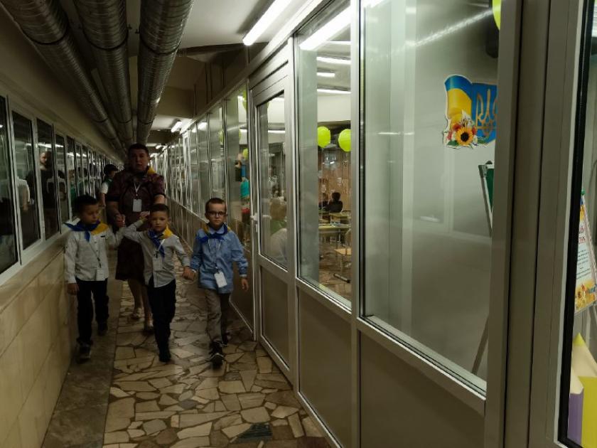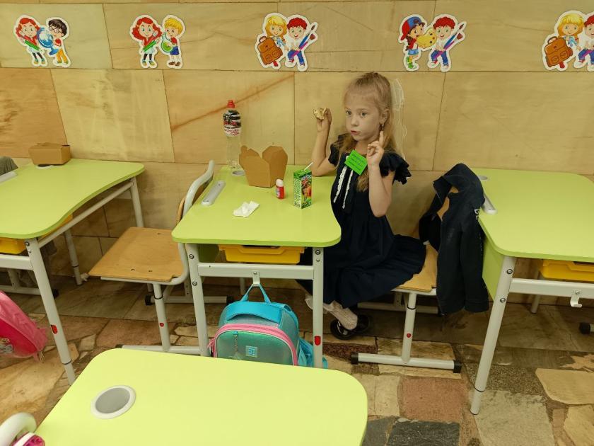 "Нічим не відрізняється навчання у метро. Я бачу дітей, їхні очі. Вони себе відчувають, як риби у воді. Розкуті, питають усе, що хочуть. Діти уже роззнайомилися, жодної сльозинки у нас не було. Вони мені уже наче рідні", — говорить учителька першачків Олена Василівна.