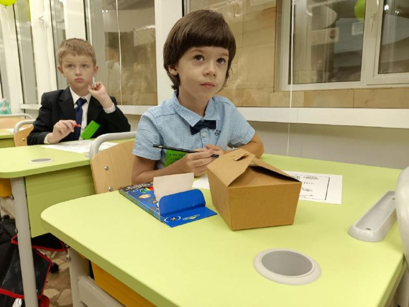 І дійсно, на багатьох партах залишилися однакові картонні ланч-бокси, у яких був бургер. Але не такий, як у закладах швидкого харчування, а більш дитяча версія. На великій перерві діти встигли "підкріпитися", а на малій прилипали до вікон, що виходять на платформу станції. У супроводі вчительки першачки зустрічали і проводжали поглядом потяги. До речі, у класах дискомфорту від метрополітену немає: ні шуму від поїздів, ні вібрації.