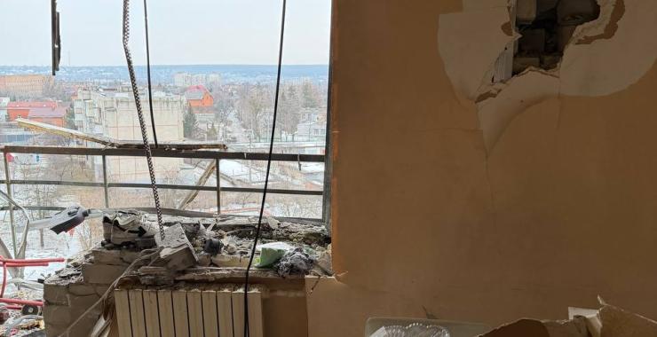 "Маємо дуже серйозні наслідки. Пошкоджений балкон, перегородки, вибиті вікна у всьому під’їзді. Крім того, руйнацій зазнала сусідня житлова багатоповерхівка", — розповів Харківський міський голова Ігор Терехов.