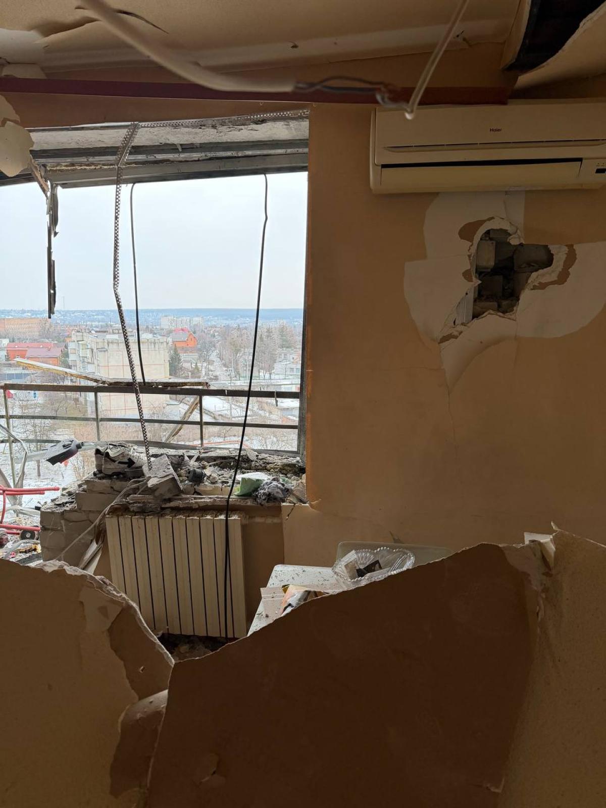 Росіяни атакували дроном дев'ятиповерхівку в Шевченківському районі вдень 2 березня. "Молнія" влетіла у квартиру на восьмому поверсі та сильно пошкодила її.