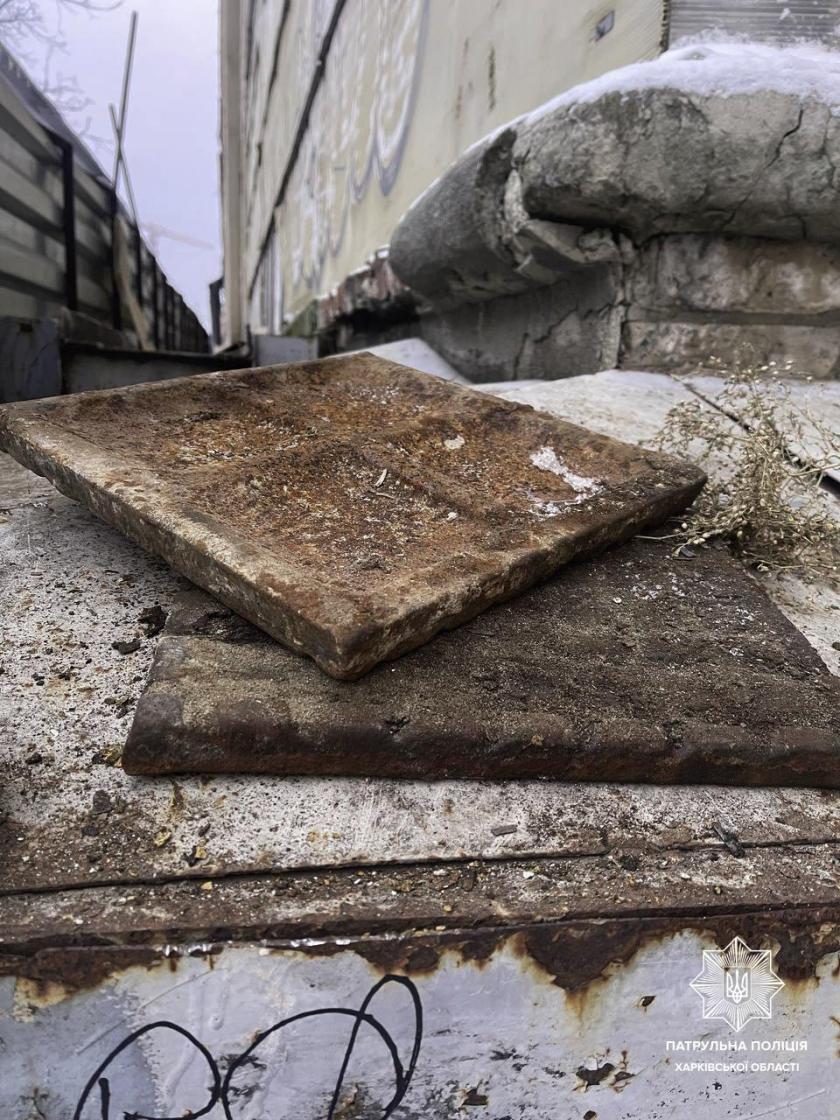 21 січня удень по вулиці Іскринській (Салтівський район) патрульні помітили чоловіка, який знаходився на території підприємства й щось перекидав через паркан. Вони підійшли до чоловіка та з'ясували, що він намагався винести з підприємства три металеві плити. Крадія затримали.