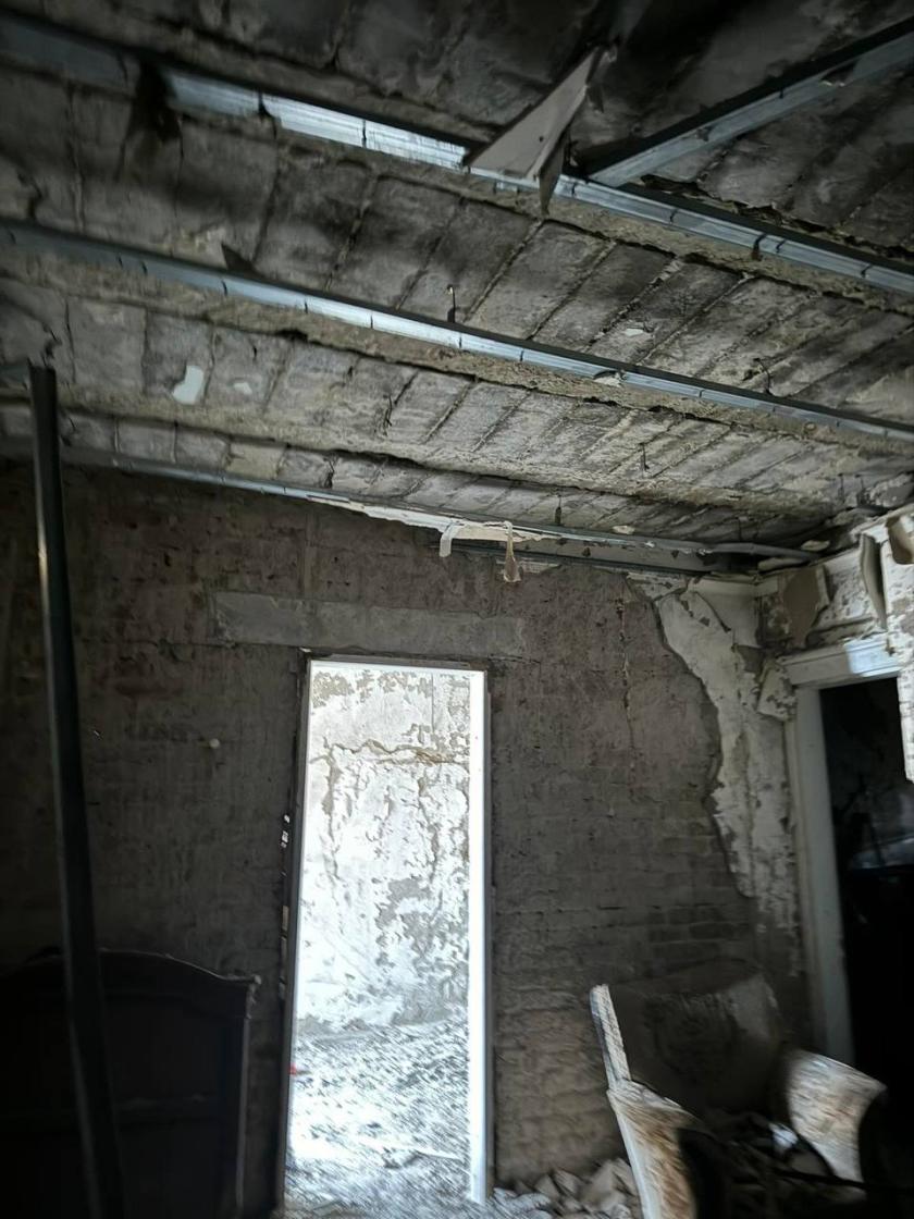 Будинок XIX сторіччя біля міськради потрапив під обстріл на самому початку повномасштабної війни. Відтоді у ньому лише закрили вікна, навіть будівельне сміття з двору комунальники не прибрали. Через зруйнований дах опади руйнують те, що не зруйнував ворог, а жителі не можуть отримати компенсацію за пошкоджене майно.