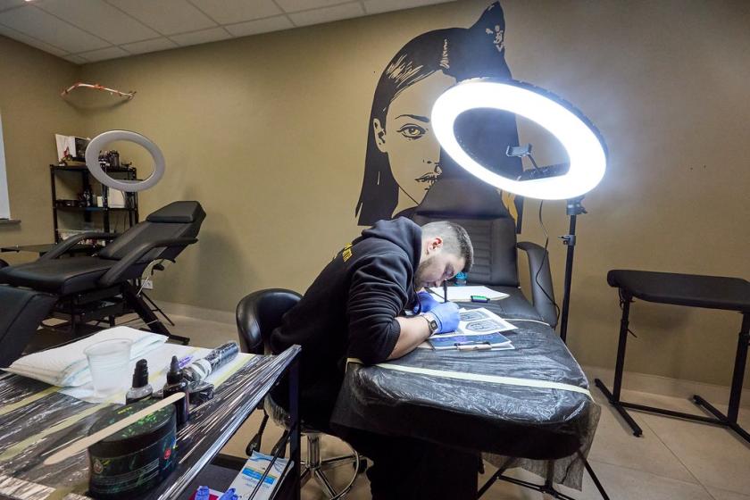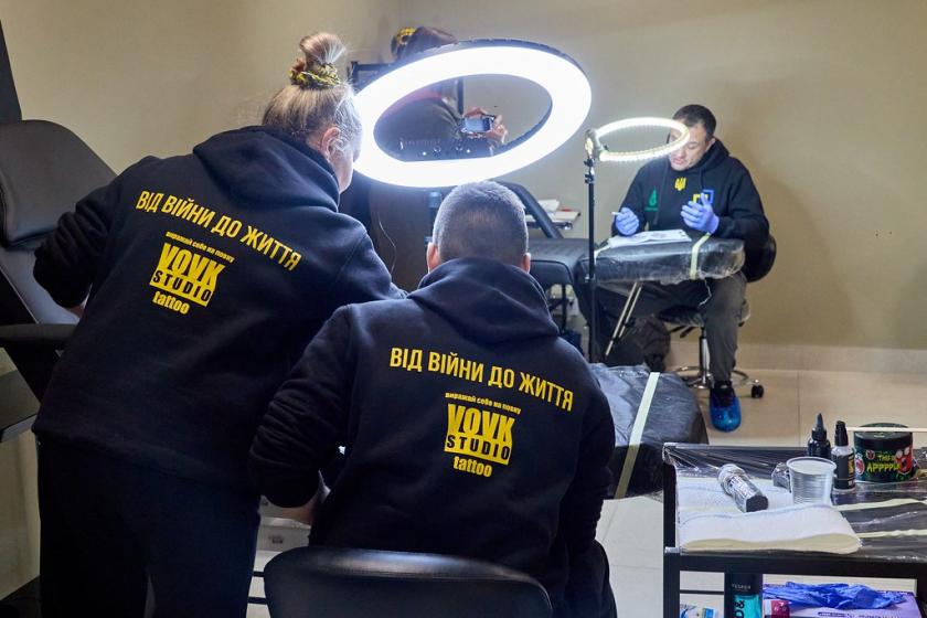 Майстриня тату Олена Вовк — військова волонтерка з 2014 року. Влітку цього року вона відкрила безкоштовну школу татуювання для бійців ЗСУ, які отримали поранення. Її перші учні вже мають власних клієнтів.