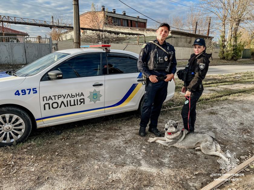 Удень 29 жовтня патрульні помітили собаку породи лайка. Він бігав проїжджою частиною по вулиці Морозова (Слобідський район). Собака був розгублений і шукав свого власника. Патрульні спіймали його та посадили у службову автівку.