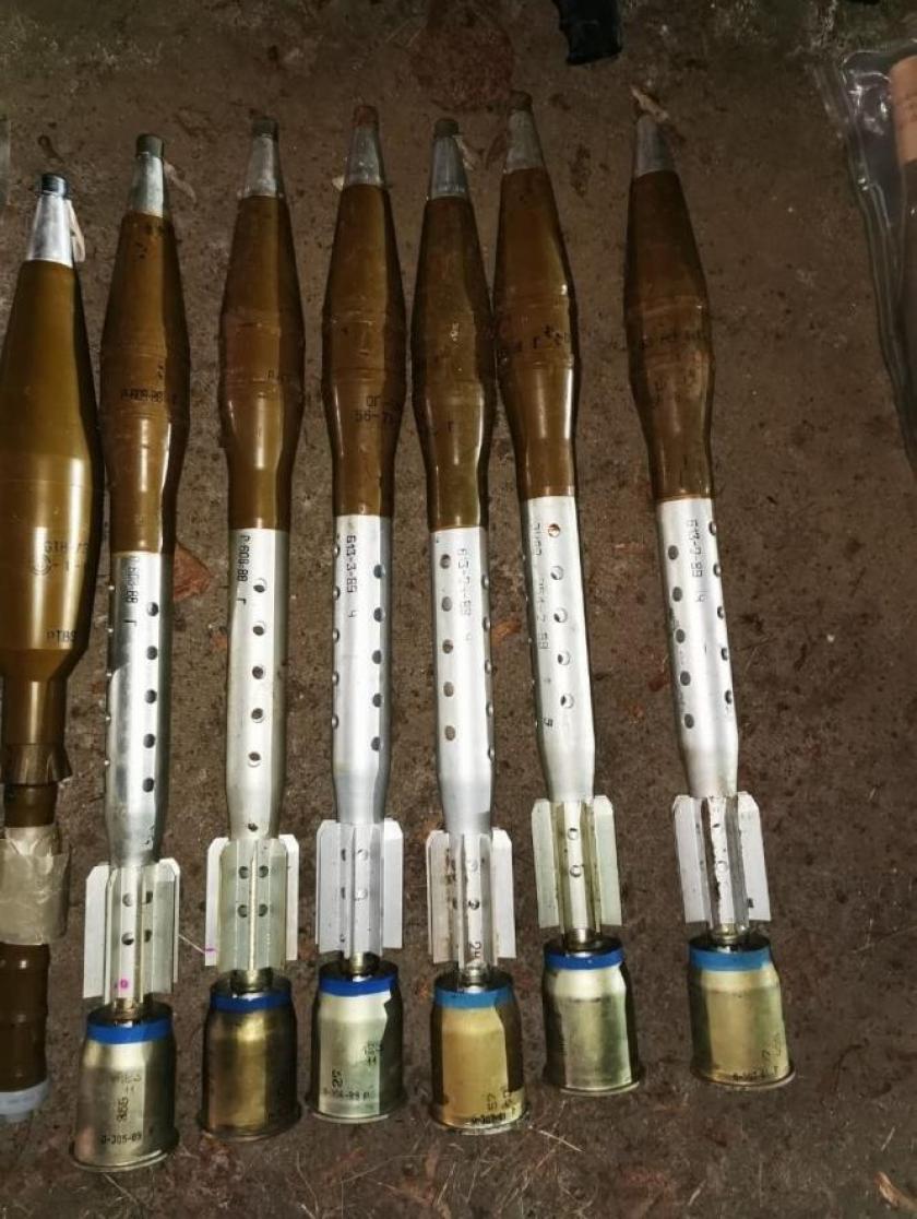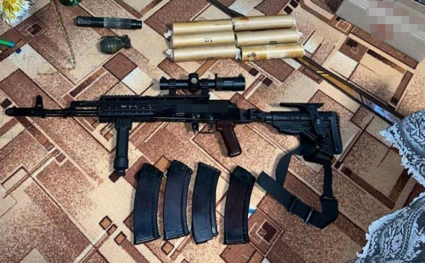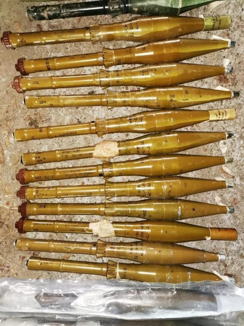 Під час обшуків у чоловіка знайшли та вилучили два автомати, близько 30 гранат, пристрій для безшумної стрільби, понад 3700 набоїв, майже п'ять кілограмів тротилу, три ручних гранатомети, пістолет, димові шашки, понад 60 акумулятивних реактивних снарядів різного типу, чотири окопні снаряди й 12 стартових порохових зарядів до ручних гранатометів. Їх направили на експертизу.