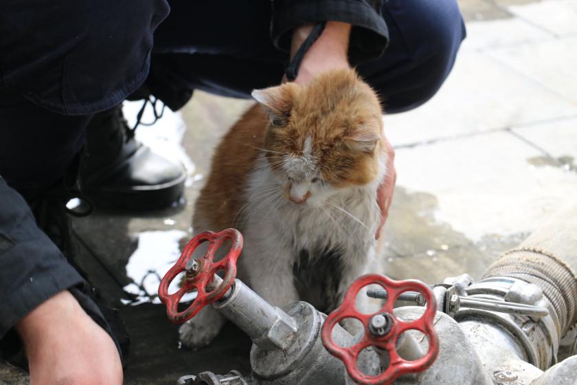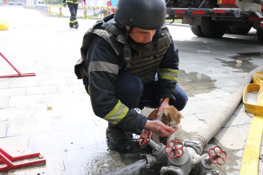 "Рятувальники вирішили взяти над ним опік та поселити у пожежній частині. Упевнені, що котик стане для них другом та оберегом", - розповіли у прес-службі ДСНС у Харківській області.