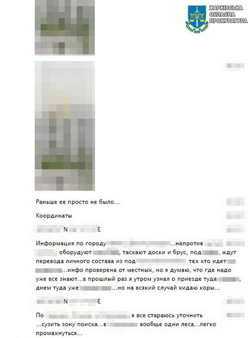 За даними слідства, чоловік працює на одному з підприємств Харкова, а також займається волонтерською роботою. Наприкінці грудня минулого року почав спілкуватися у Telegram із представником Росії. Він передавав йому інформацію про місце знаходження українських захисників та їхньої техніки у Харківській області. Робив це свідомо. Також чоловік писав до проросійських чатів, де негативно висловлювався про українських військових.