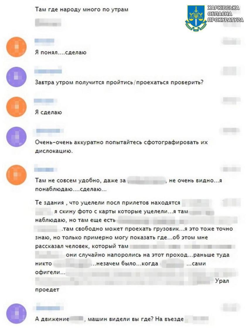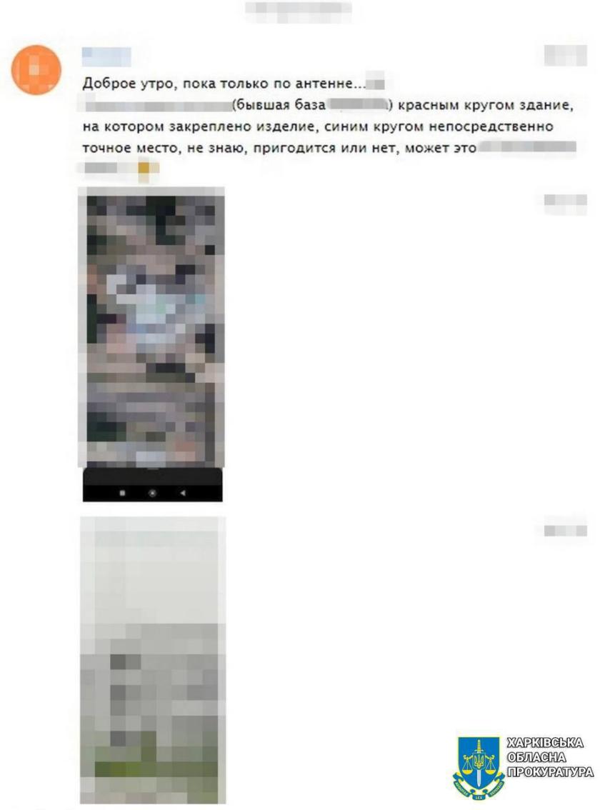 "Встановлено, що харків'янин, маючи проросійську позицію, грошей не отримував і працював "за ідею". Він вишукував місця дислокації українських захисників у місті та прилеглих населених пунктах. Зловмисник фіксував місцезнаходження Сил оборони та надсилав дані російському куратору у вигляді відповідних позначок на мапах, фотознімків і текстових повідомлень. Крім того, чоловік ділився своїми поглядами серед однодумців, спілкуючись у проросійському чаті. Зокрема, обвинувачений негативно висловлювався про українських захисників, повторюючи фейки кремлівської пропаганди і намагаючись таким чином дискредитувати ЗСУ", — розповіли у Харківській обласній прокуратурі.