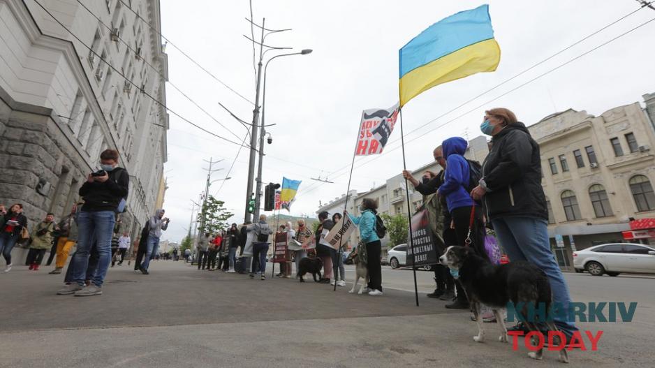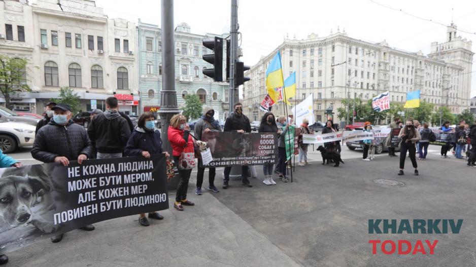 Вдень 1 червня біля будівлі Харківської міськради на площі Конституції, 7 вимагали припинити жорстоке знищення тварин, яким займається комунальне підприємство "Центр поводження з тваринами".