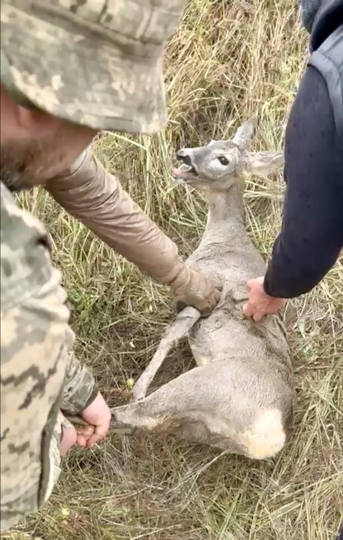 Військовослужбовці корпусу НГУ "Хартія" врятували козулю, яка заплуталася в колючому дроті.