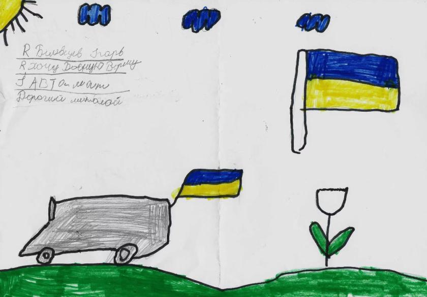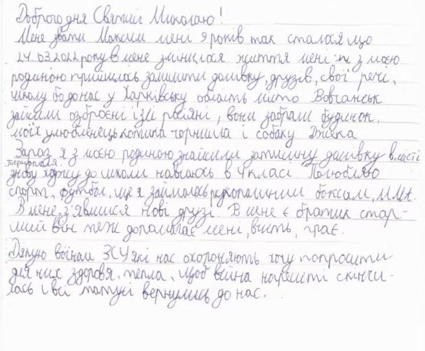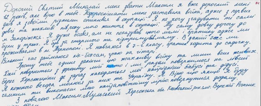 "Хай повернеться з фронту мій тато, і ми разом повернемося на лівий берег Херсонщини, де зараз знаходяться мої рідні бабусі й дідусі", — пише 7-класник Максим із Каховського району, який зараз живе в Тернополі.