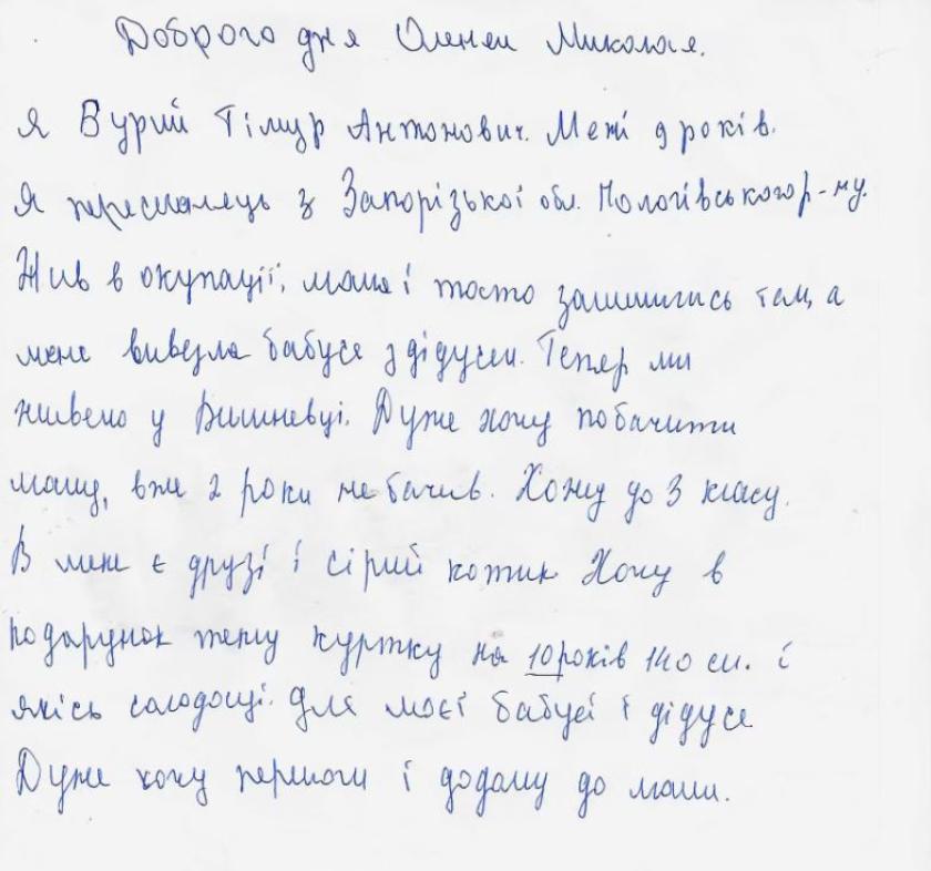Багато хто з дітей не просить подарунків — лише миру та можливості побачити батьків, що служать в ЗСУ, або родичів, які лишилися в окупації.