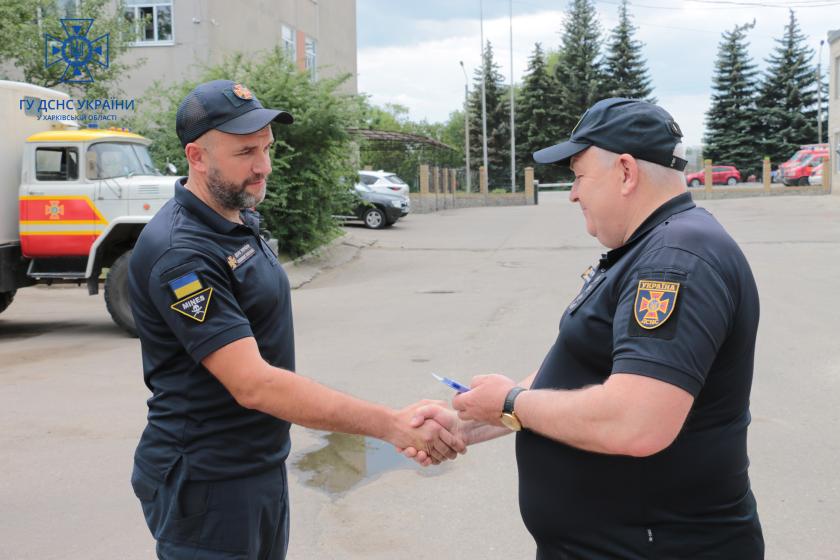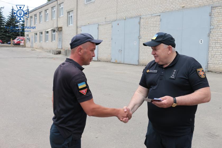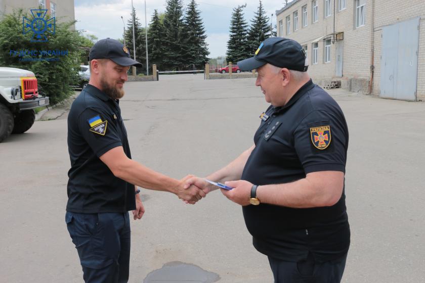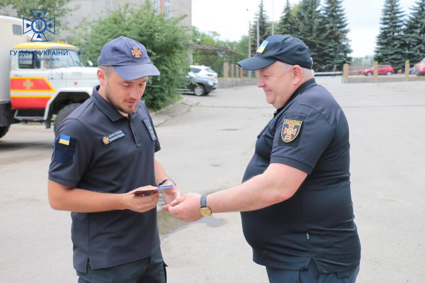 Заступник начальника ГУ з реагування на надзвичайні ситуації Головного управління ДСНС України у Харківській області Анатолій Торяник нагородив піротехніків медалями "За оборону міста-героя Харкова".