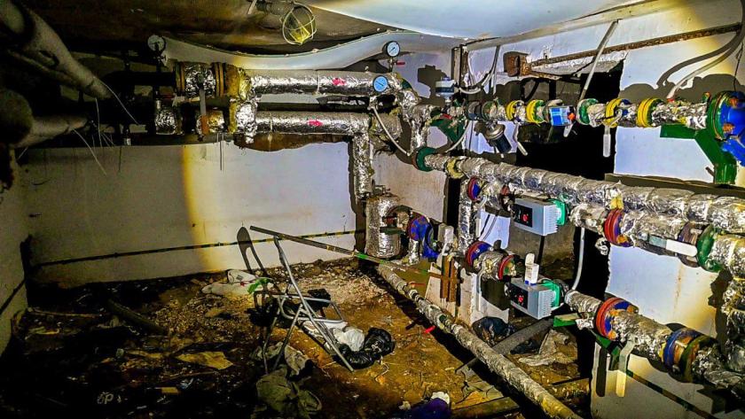 Як каже комунальник, на початку війни у цьому підвалі ховалися люди, Згодом сюди провели світло. Теплоенергетики додатково ізолювали труби заради безпеки мешканців, але дехто залишився жити в укритті і поцупив те, що можна було відокремити від системи теплопостачання.
