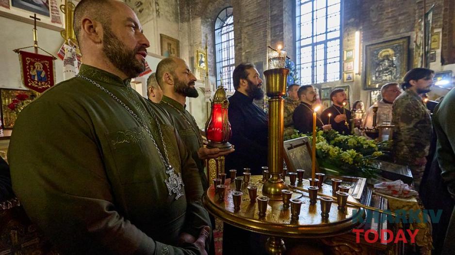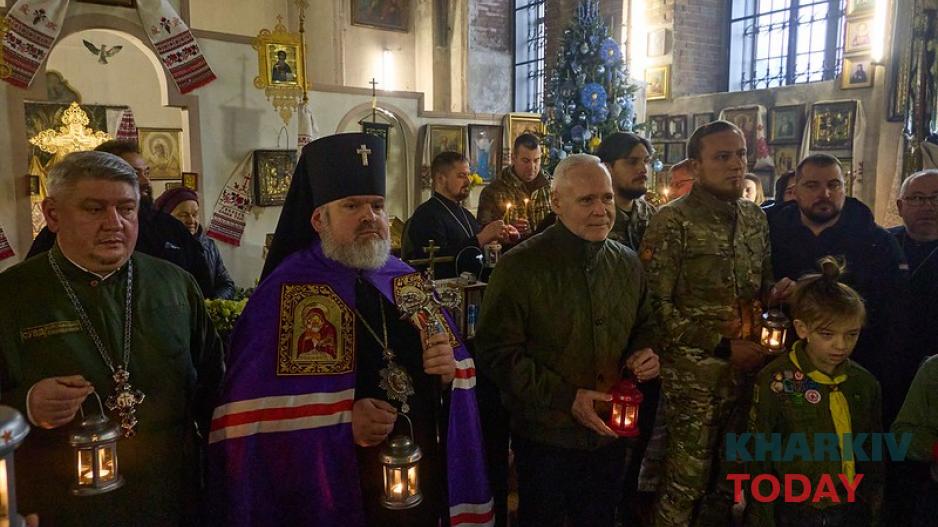 У церемонії передачі священного вогню, що пройшла у храмі Святого Іоана Богослова, також взяли участь Архієпископ Харківський і Слобожанський Митрофан, капелани, інші представники духовенства, військові, місцеві мешканці.