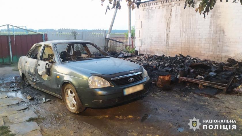 "Він побачив колишню співмешканку з іншим чоловіком. Примітив його автомобіль. Після чого поїхав додому. Вночі чоловік повернувся в село з підготовленою горючою речовиною. Він переліз через паркан на територію двору, де стояв автомобіль, облив та підпалив", — розповіли у Головному управлінні Нацполіції у Харківській області.