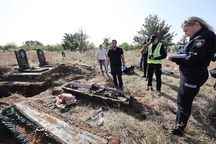 У селищі Савинці Ізюмського району слідчі та криміналісти ексгумували тіло закатованого російськими окупантами місцевого мешканця.