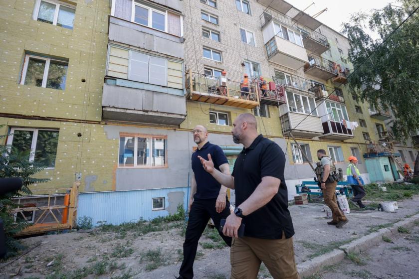 "Оглянули процес відбудови та поспілкувалися з місцевими мешканцями. Реконструкція відбувається за принципом "краще, ніж було": утеплюється фасад, відбувається заміна інженерних мереж, враховуються норми безбар'єрності. Лише цього року на ліквідацію наслідків російської агресії в Харківській області Уряд виділив 1,7 млрд грн", — розповів Шмигаль у своєму Telegram-каналі.