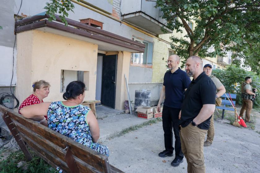 У п'ятницю 12 липня прем'єр-міністр України Денис Шмигаль приїхав із робочим візитом до Харківської області. Він побував у селищі Старий Салтів у Чугуївському районі, проінспектував процес відновлення житлових будинків, амбулаторії і ліцею і зустрівся із місцевими жителями.