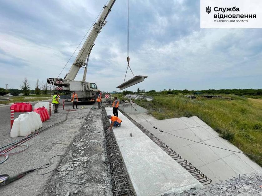 "Проводяться підготовчі роботи з організації будівельних майданчиків та влаштування фундаментів споруд. На деяких об'єктах виконується монтаж прогонових будов. Окрім цього, на завершальному етапі проектування ремонту інших мостових споруд на державних дорогах Харківщини", — повідомили у Службі відновлення.